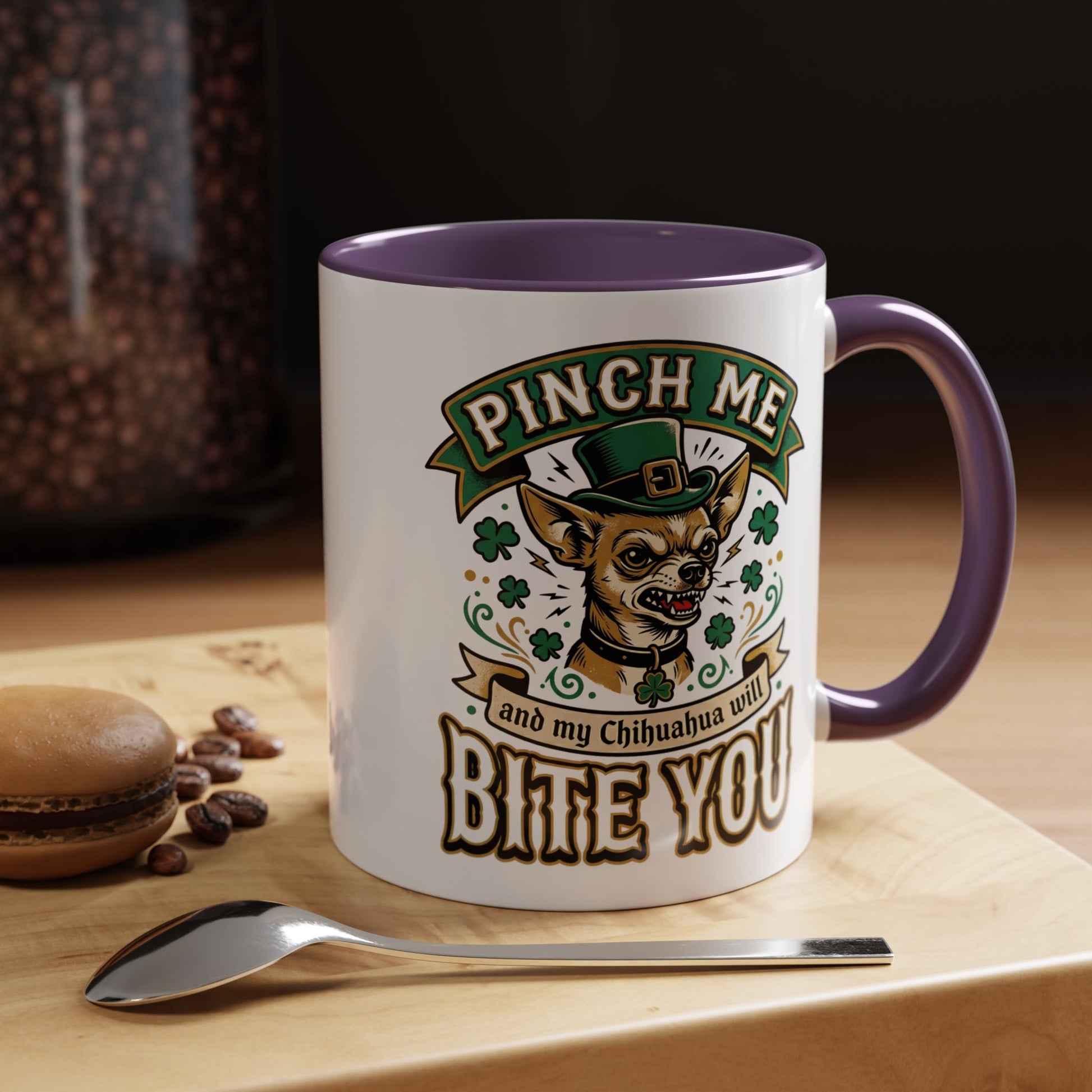St. Patrick's Chihuahua Coffee Mug — "Pinch Me and My Chihuahua Will Bite You" (11oz)